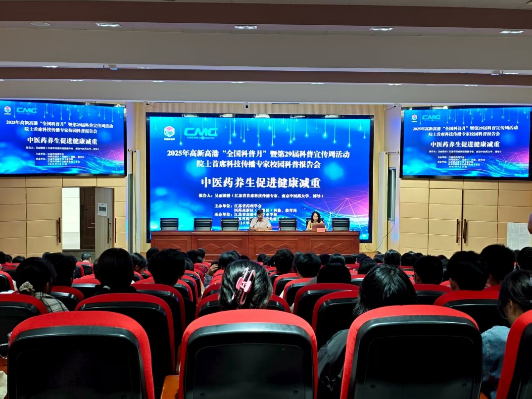 在全国科普月期间,2025年9月19日,江苏省药理学会在江苏省高港中等专业学校成功举办了一场题为“中医药养生促进健康减重”的科普讲座。本次活动是2025年高新高港“全国科普月”暨第29届科普宣传周系列活动之一,由江苏省药理学会、医药高新区(高港区)科协与教育局联合主办,江苏省高港中等专业学校与江苏省药理学会抗炎免疫专业委员会共同承办。现场近250余位师生参加。