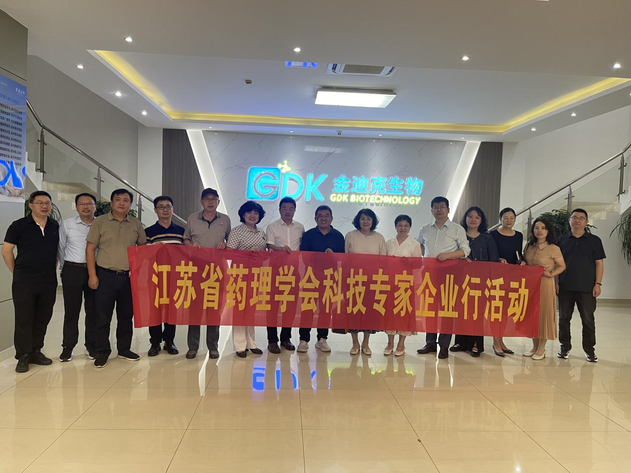 为加强学会促进中国医药城的学术交流加强和服务江苏泰州生物医药创新发展,聚焦新医药与生命健康产业链发展,搭建具有影响力的新医药与生命健康产业高端交流平台,促进医药的融合发展。江苏省药理学会开展院士专家企业行活动。本次活动由江苏省药理学会和泰州医药高新区高港科协共同主办。并于2025年0月19日全国科普期间学会专家与高港科协领导、江苏金迪克生技术股份有限公司技术人员开展合作交流现场考察活动。